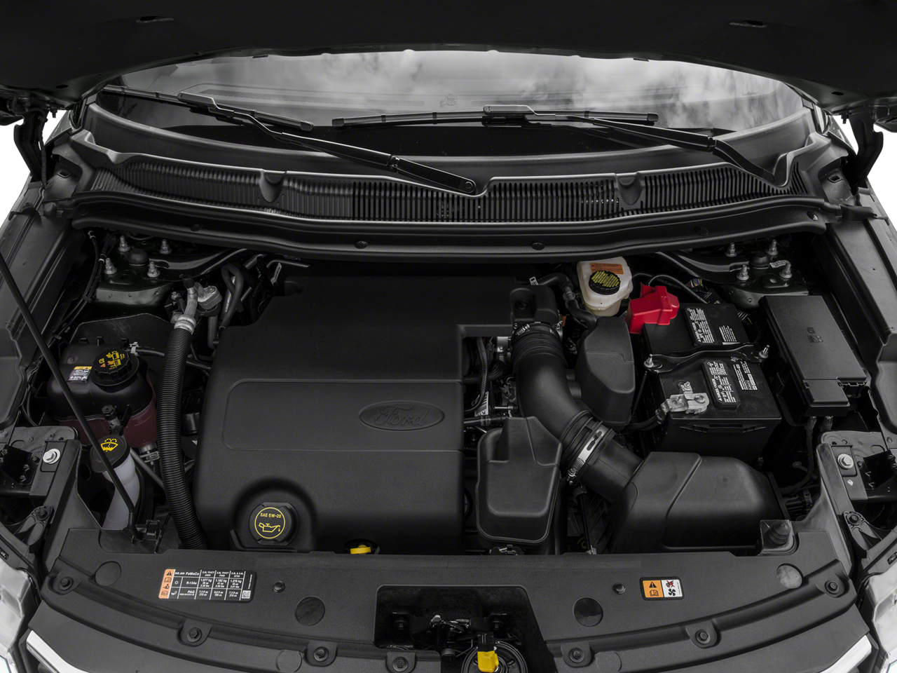 This car is well equipped with the following features: Comfort Package (Leather-Trimmed Heated Bucket Seats), Driver Connect Package (Auto-Dimming Rear-View Mirror), Equipment Group 202A (Dual-Zone Electronic Automatic Temperature Ctrl, Forward Sensing System, and Remote Start), 18 5-Spoke Painted Aluminum Wheels, 3.65 Axle Ratio, 3rd row seats: split-bench, 4-Wheel Disc Brakes, 6 Speakers, ABS brakes, Air Conditioning, Alloy wheels, AM/FM radio: SiriusXM, Brake assist, Bumpers: body-color, CD player, Compass, Delay-off headlights, Driver door bin, Driver vanity mirror, Dual front impact airbags, Dual front side impact airbags, Electronic Stability Control, Emergency communication system: 911 Assist, Exterior Parking Camera Rear, Four wheel independent suspension, Front anti-roll bar, Front Bucket Seats, Front Center Armrest, Front fog lights, Front License Plate Bracket, Front reading lights, Fully automatic headlights, Hands-Free Liftgate, Heated door mirrors, Illuminated entry, Knee airbag, Leather steering wheel, Low tire pressure warning, Occupant sensing airbag, Outside temperature display, Overhead airbag, Overhead console, Panic alarm, Passenger door bin, Passenger vanity mirror, Power door mirrors, Power driver seat, Power passenger seat, Power steering, Power windows, Radio: AM/FM Stereo w/Single CD/MP3 Capable, Rear air conditioning, Rear anti-roll bar, Rear Bumper Protector (Dealer Installed), Rear Parking Sensors, Rear reading lights, Rear window defroster, Rear window wiper, Remote keyless entry, Roof rack: rails only, Security system, Speed control, Speed-sensing steering, Speed-Sensitive Wipers, Split folding rear seat, Spoiler, Steering wheel mounted audio controls, SYNC, Tachometer, Telescoping steering wheel, Tilt steering wheel, Traction control, Trip computer, Turn signal indicator mirrors, and Variably intermittent wipers.