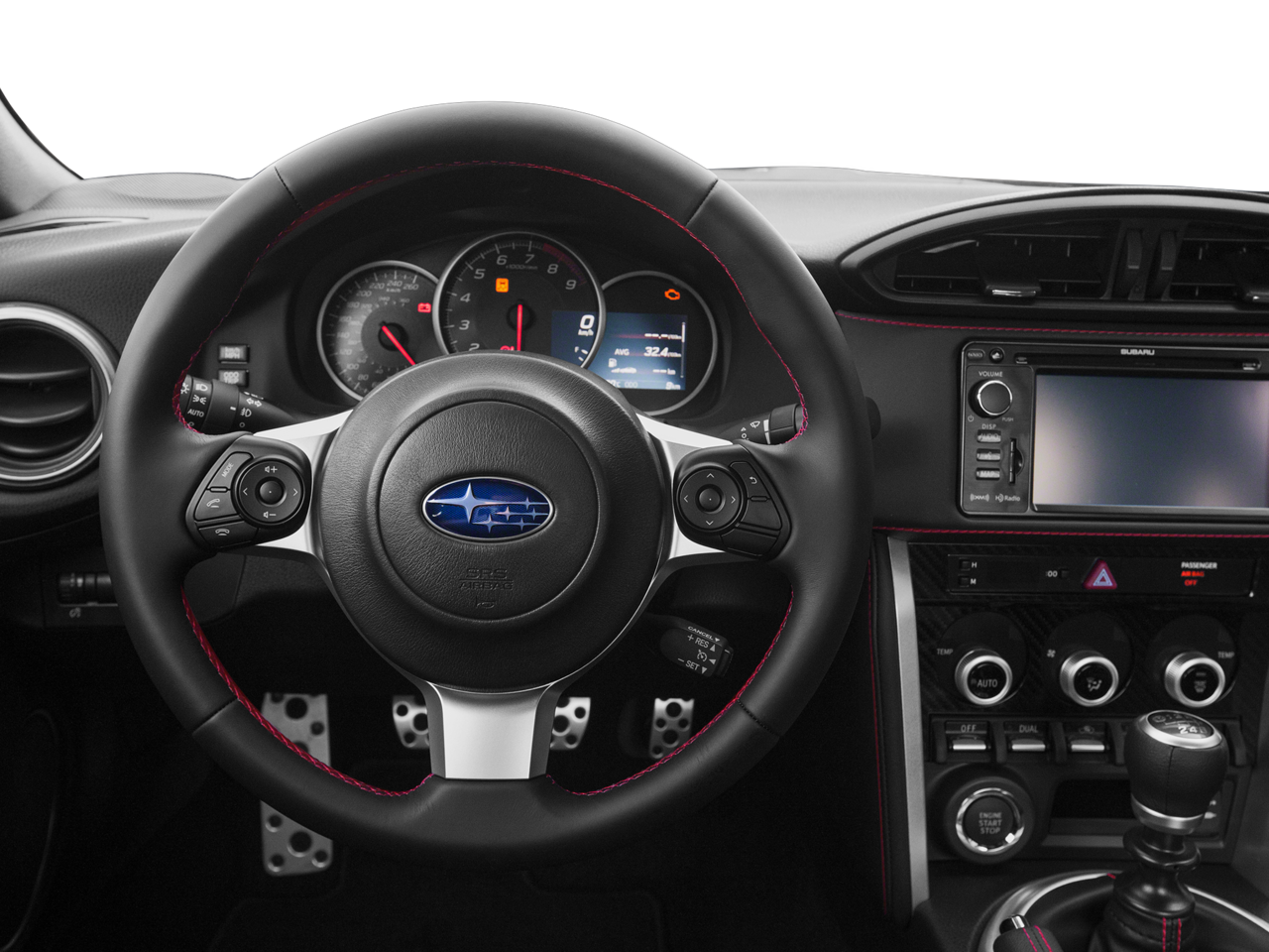 Slip into the performance-designed front heated bucket seats, wrapped in elegant leather upholstery with red stitching, and let the BRZ transport you to a new level of driving exhilaration. The tilt and telescoping steering wheel, along with the steering wheel-mounted audio controls, allow you to customize your driving experience for maximum comfort and control.
