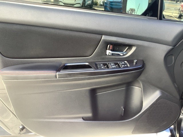 This car is well equipped with the following features: Standard Model, 17 Alloy Wheels, 4-Wheel Disc Brakes, 6 Speakers, ABS brakes, Air Conditioning, All Weather Floor Mats, Alloy wheels, AM/FM radio: SiriusXM, Automatic temperature control, Brake assist, Bumpers: body-color, Cargo Tray, CD player, Checkered Cloth Upholstery, Driver door bin, Driver vanity mirror, Dual front impact airbags, Dual front side impact airbags, Electronic Stability Control, Exterior Parking Camera Rear, Four wheel independent suspension, Front anti-roll bar, Front Bucket Seats, Front Center Armrest, Front reading lights, Heated door mirrors, Illuminated entry, Knee airbag, Leather Shift Knob, Leather steering wheel, Low tire pressure warning, Occupant sensing airbag, Outside temperature display, Overhead airbag, Panic alarm, Passenger door bin, Passenger vanity mirror, Performance Design Front Bucket Seats, Power door mirrors, Power steering, Power windows, Radio data system, Radio: Subaru Starlink 6.2 Multimedia System, Rear anti-roll bar, Rear Bumper Applique, Rear seat center armrest, Rear window defroster, Remote keyless entry, Security system, Speed control, Speed-sensing steering, Split folding rear seat, Spoiler, Sport steering wheel, Steering wheel mounted audio controls, STI Short Throw Shifter (WRX), Tachometer, Telescoping steering wheel, Tilt steering wheel, Traction control, Trip computer, and Variably intermittent wipers.