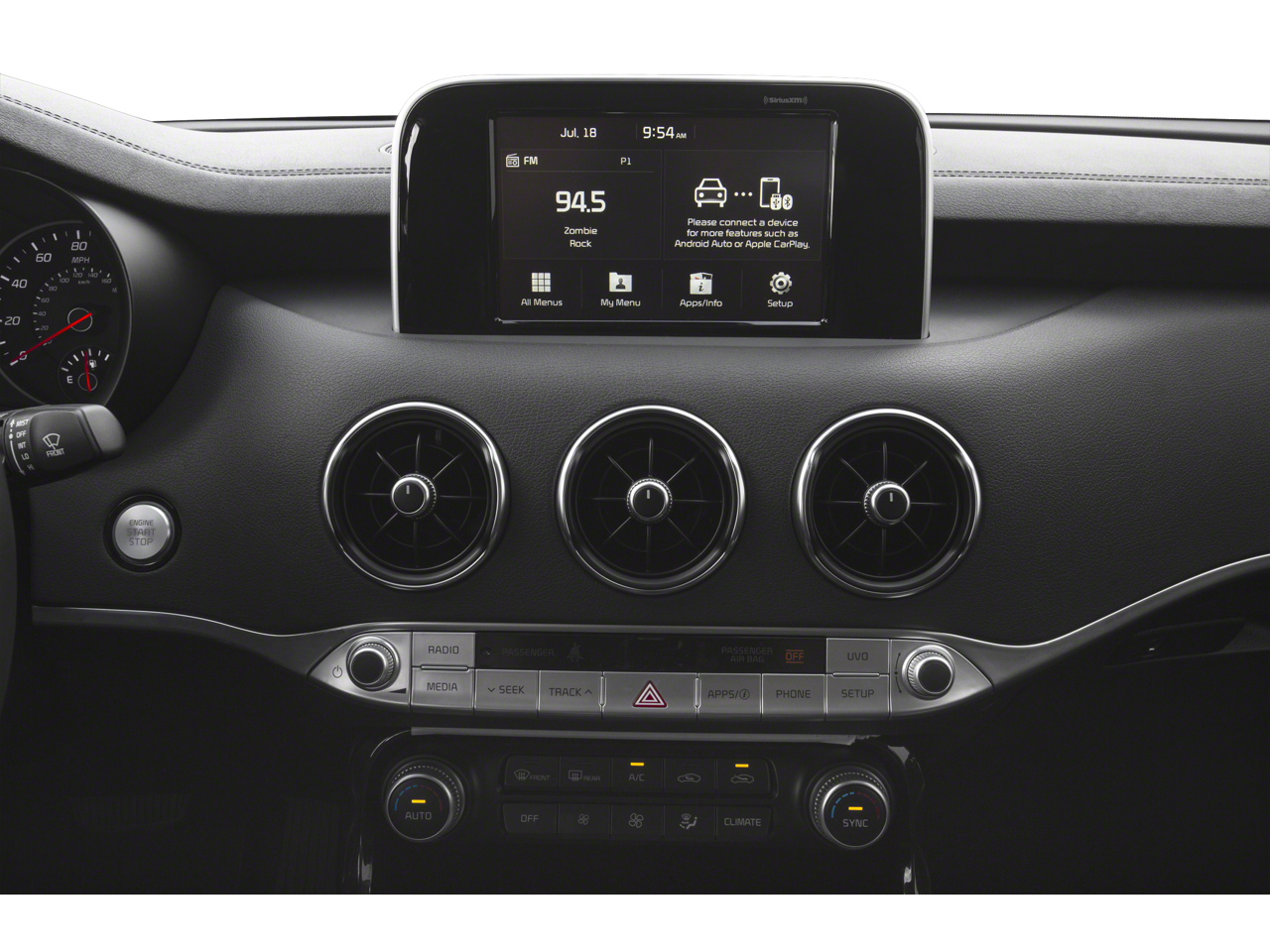 - Radio: AM/FM/MP3/HD/SiriusXM Audio System -inc: 7" color touch-screen display, 6 speakers, UVO eServices infotainment system, support for Android Auto and Apple CarPlay, USB input, Bluetooth wireless connectivity, steering-wheel-mounted controls and voice recognition