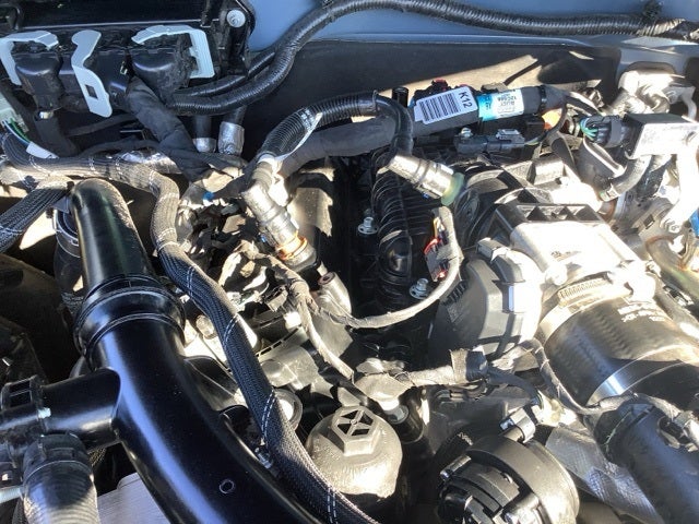 This car is well equipped with the following features: Equipment Group 354A High/Lux Package (10 Speakers w/Subwoofer, 360-Degree Camera, Adaptive Cruise Control, Additional Sound Deadening, Evasive Steering Assist, Front Parking Sensors, Heated Steering Wheel, Information on Demand Panel, Radio: B&O Sound System by Bang & Olufsen, Sideview Mirrors, Universal Garage Door Opener, and Wireless Charging Pad), 4-Wheel Disc Brakes, 4.7 Axle Ratio, 7 Speakers, ABS brakes, Air Conditioning, Alloy wheels, AM/FM radio: SiriusXM with 360L, AM/FM Stereo, Auto High-beam Headlights, Auto-dimming Rear-View mirror, Automatic temperature control, Brake assist, Carbonized Gray Molded-In-Color Hard Top, Compass, Connected Navigation, Delay-off headlights, Driver door bin, Driver vanity mirror, Dual front impact airbags, Dual front side impact airbags, Electronic Stability Control, Emergency communication system: 911 Assist, Exterior Parking Camera Rear, Front & Rear Floor Liners w/o Carpet Floor Mats, Front anti-roll bar, Front Bucket Seats, Front Center Armrest, Front dual zone A/C, Front fog lights, Front License Plate Bracket, Front reading lights, Front Row Top Panels Storage Bag, Front wheel independent suspension, Fully automatic headlights, Hard Top Sound Deadening Headliner, Heated door mirrors, Heated front seats, Heated Leather-Trimmed/Vinyl Bucket Seats, Illuminated entry, Integrated roll-over protection, Leather Shift Knob, Low tire pressure warning, Navigation system: Connected Navigation, Occupant sensing airbag, Outside temperature display, Overhead airbag, Overhead console, Panic alarm, Passenger door bin, Passenger vanity mirror, Power door mirrors, Power steering, Power windows, Radio data system, Rear-Window Defroster & Washer, Remote keyless entry, Removable Hoop Step, Security system, SiriusXM Radio w/360L, Slide-Out Tailgate, Speed control, Split folding rear seat, Steering wheel mounted audio controls, SYNC 4, Tachometer, Telescoping steering wheel, Tilt steering wheel, Traction control, Trip computer, Variably intermittent wipers, Voltmeter, and Wheels: 17 Black High Gloss-Painted Aluminum.